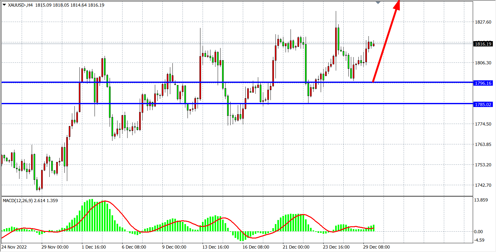 交易策略:在1796.00 之上看涨,目标1820.00         1835.00