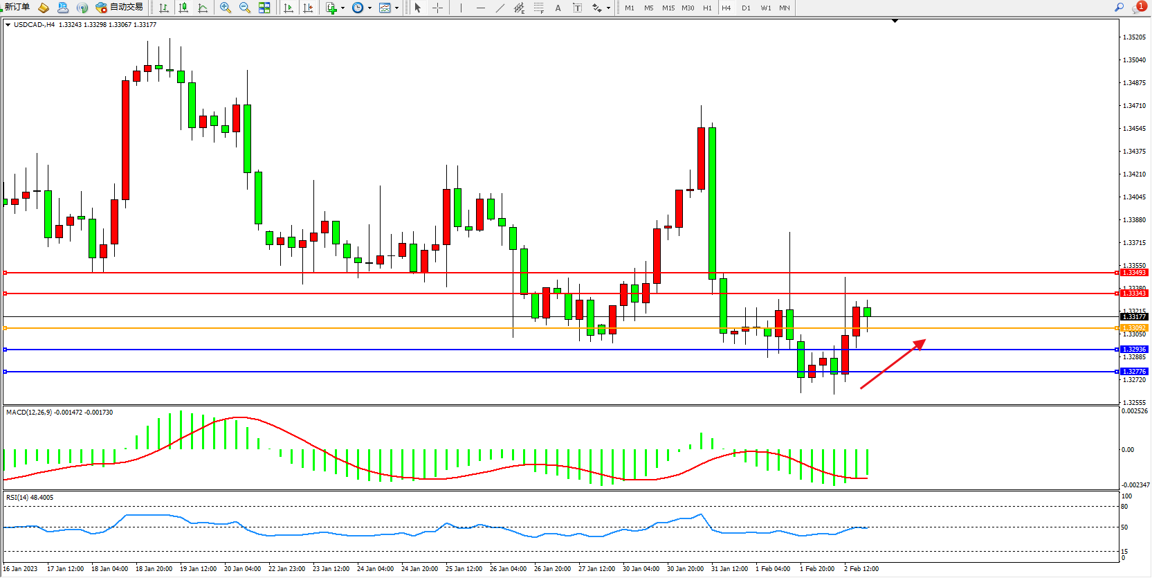 美元兑加元维持1.33177附近震荡,美联储隔夜如期进一步放慢加息幅度至25个基点,并承认通胀有所缓解。主席鲍威尔暗示,若通胀加快下降,将在2023年底前降息。这导致美元大幅走低,并限制了油价跌势。