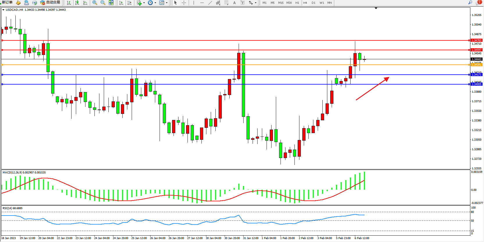4小时图看:多头动力延续上行趋势持续震荡上扬,短期看涨情绪态势良好,市场多头不断攀升中,MACD指标处于多头区域持续上移,RSI指标处于多头区域高位整理;