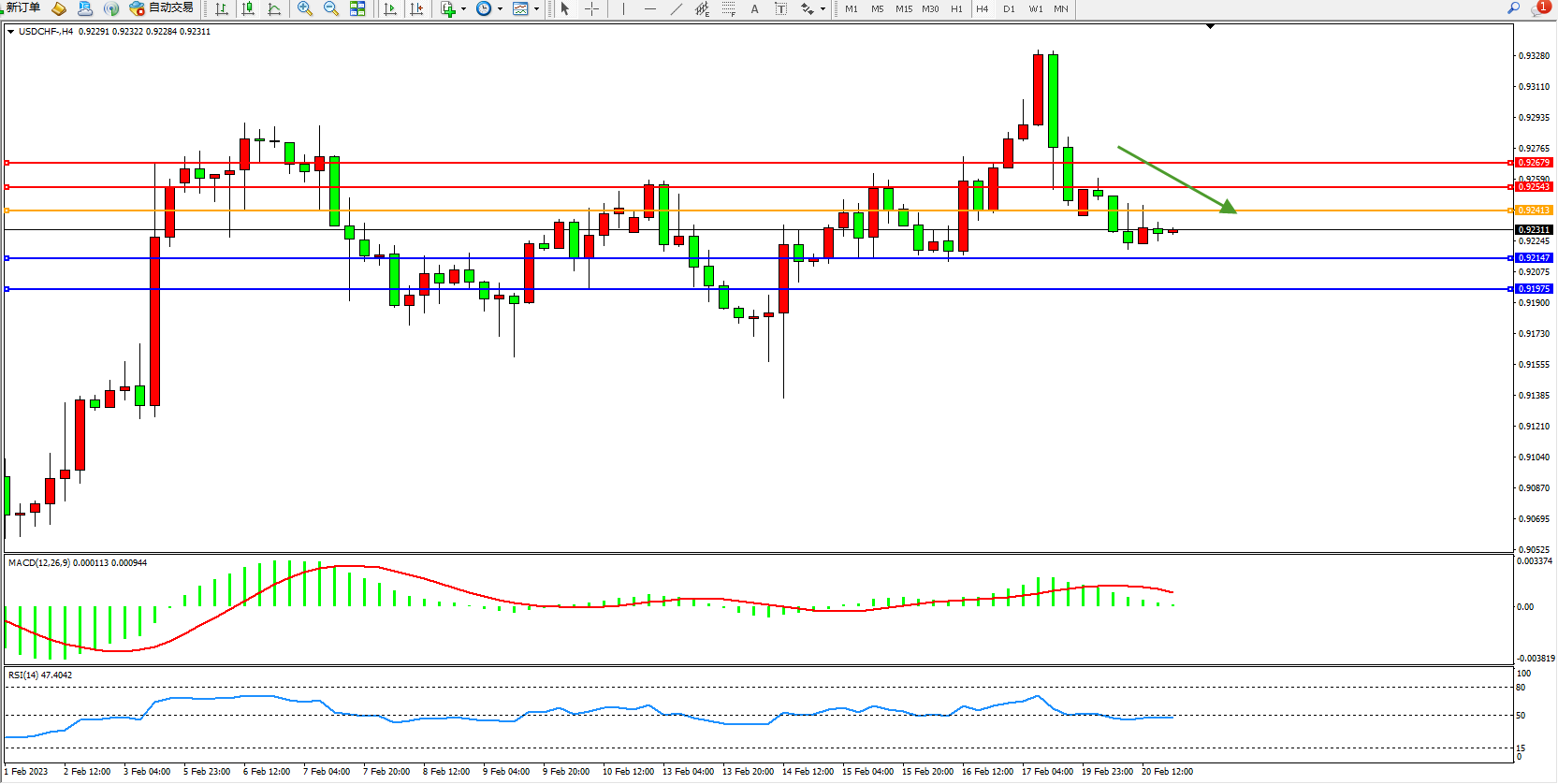 交易策略:0.92413下方看跌,目标0.92147、0.91975
