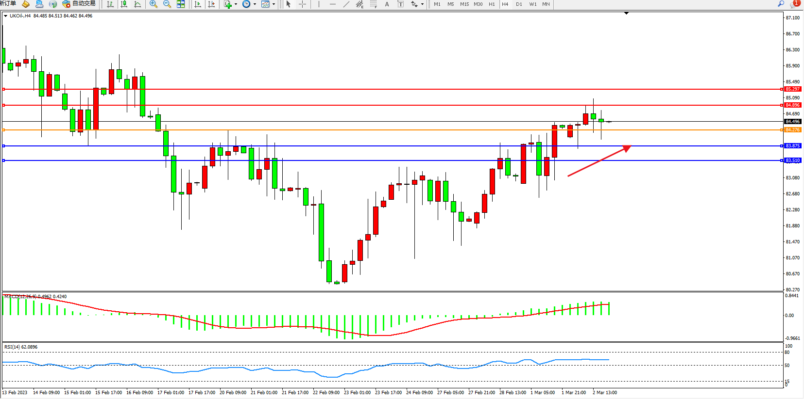 布油维持84.496附近震荡,石油也受到全球整体需求前景隐约存在的不确定性打击。欧洲最大经济体德国2月份的通胀升幅超过预期,同样是欧洲主要经济体的法国和西班牙2月通胀意外增长。