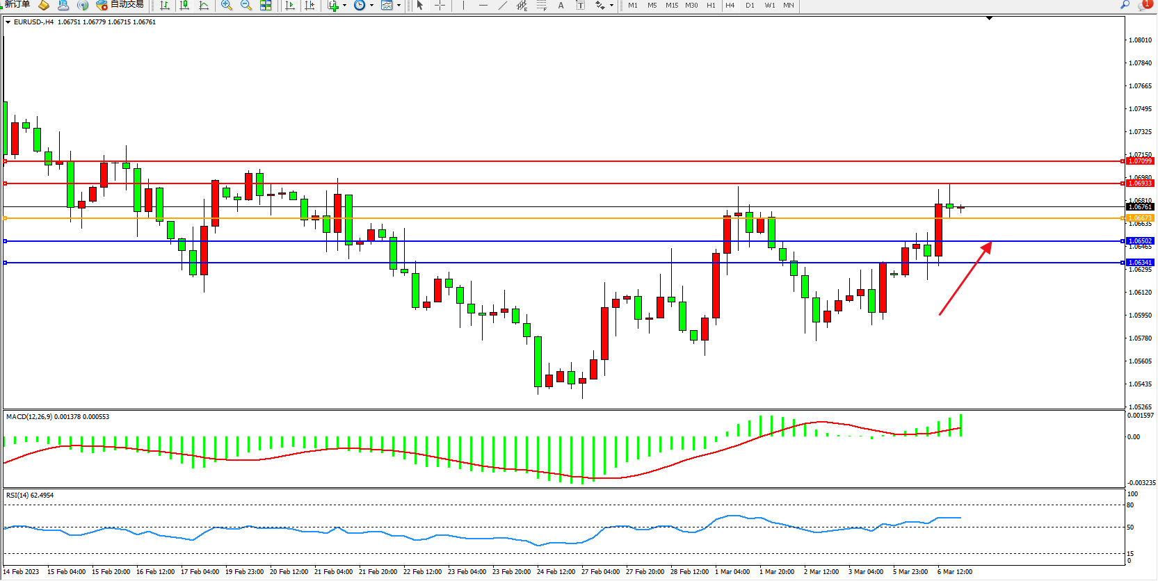 交易策略:1.06673上方看涨,目标1.06933  1.07099