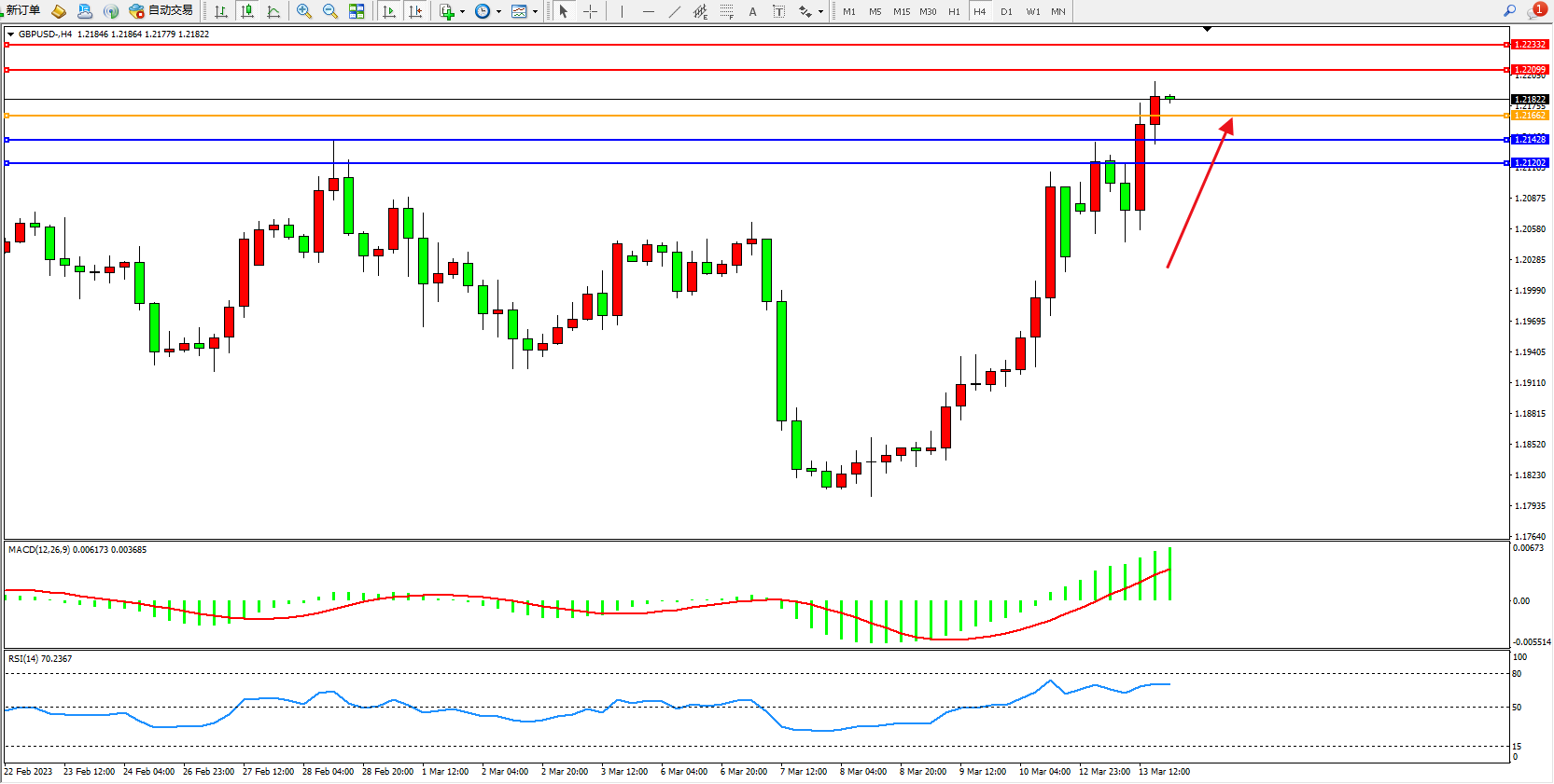 阻力位:1.22099 1.22332