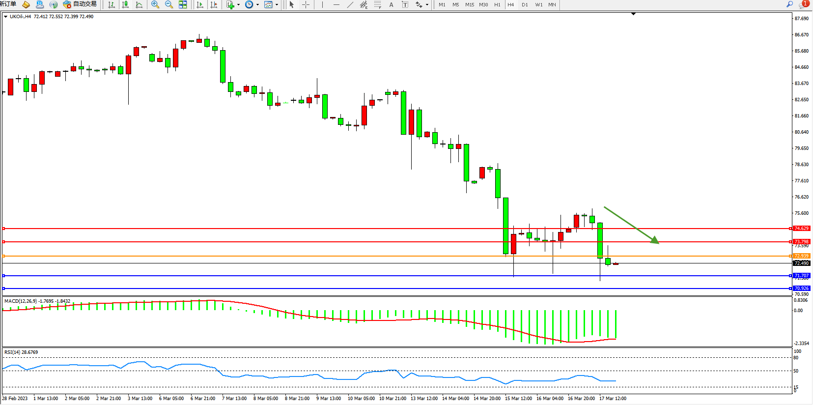 布油维持72.490附近震荡,受益于中国需求复苏预期。但由于银行业危机冲击全球金融和石油市场,油价将创下去年12月9日当周以来的最大单周跌幅。