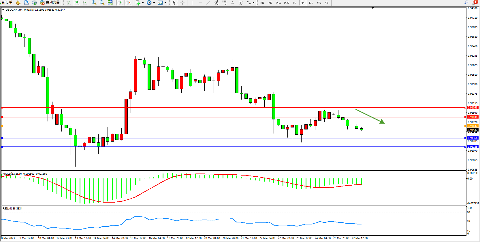 交易策略:0.91632下方看跌,目标0.91356 0.91159