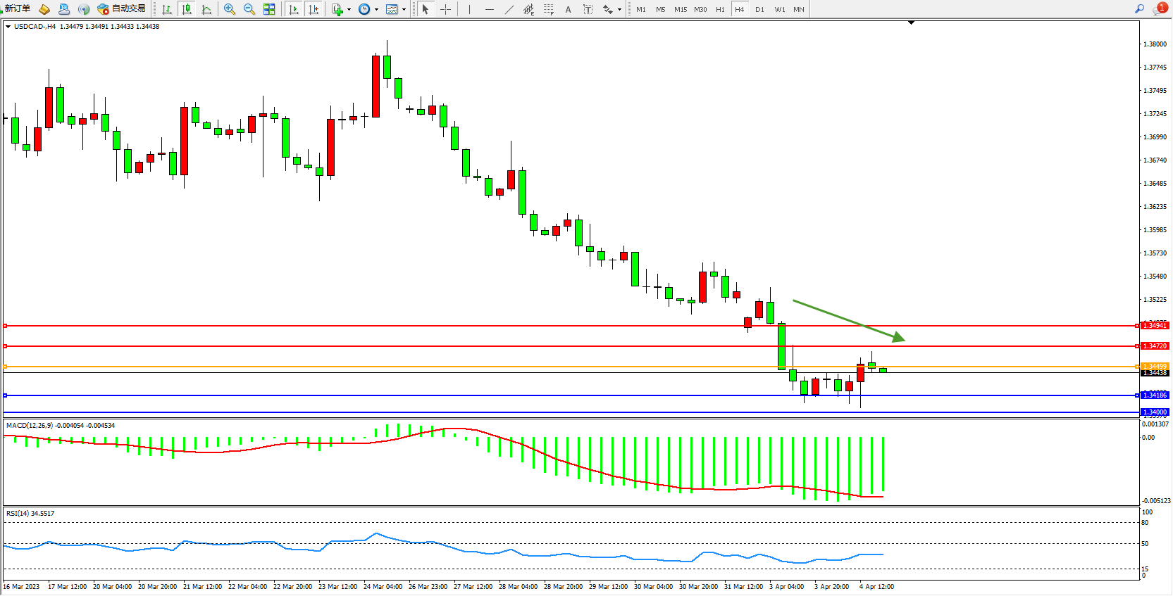 美元加元USDCAD——4小时K线图显示: