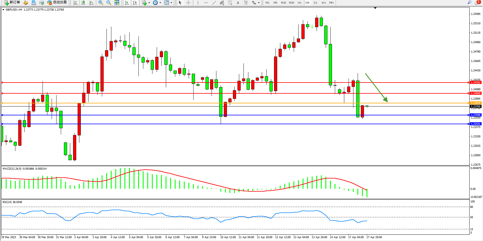 交易策略:1.23819下方看跌,目标1.23596  1.23431
