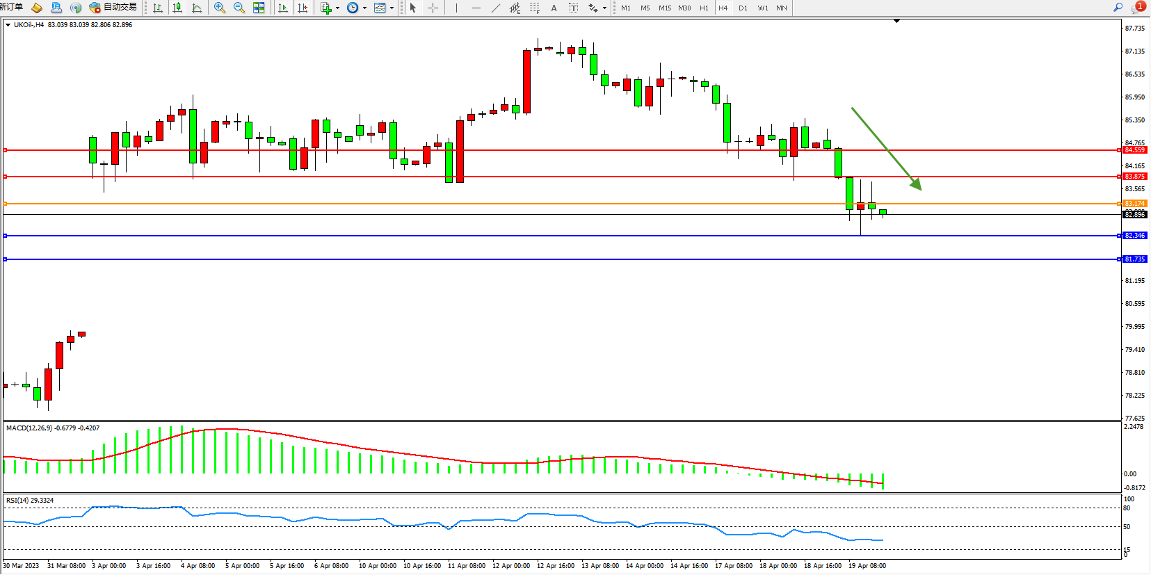 布油UKOil——4小时K线图显示: