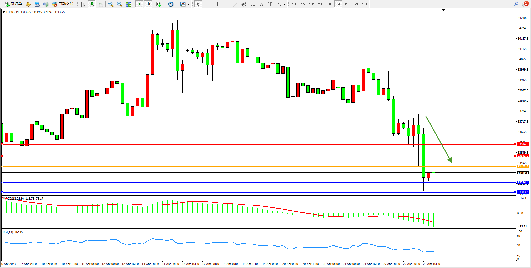 道琼斯指数4月26日(周三)收盘下跌229.16点,跌幅0.68%,报33301.67点;美国3月耐用品订单月率:总体数据是有误导性的,因为核心订单数据疲软,同时出现了向下修正,修正后的数据是自2021年2月以来的最低水平。