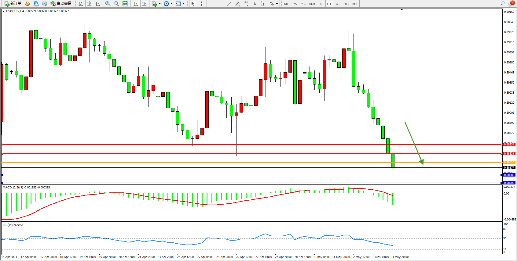 USDCHF:空头下挫 USDCHF  XAUUSD