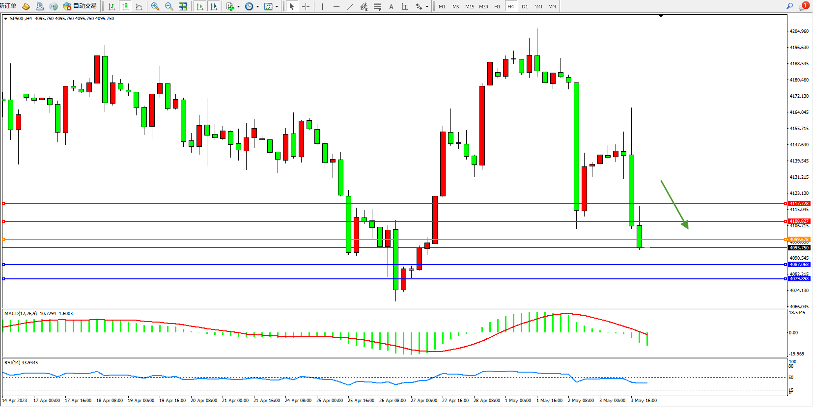标普500指数5月3日(周三)收盘下跌28.78点,跌幅0.70%,报4090.80点;美国4月ADP就业人数 29.6万人,预期14.8万人,前值14.5万人。为2022年7月以来最大增幅。美国私营企业4月份增加了29.6万个就业岗位,表明尽管换工作的人的工资增长大幅放缓,但仍出现了招聘热潮。