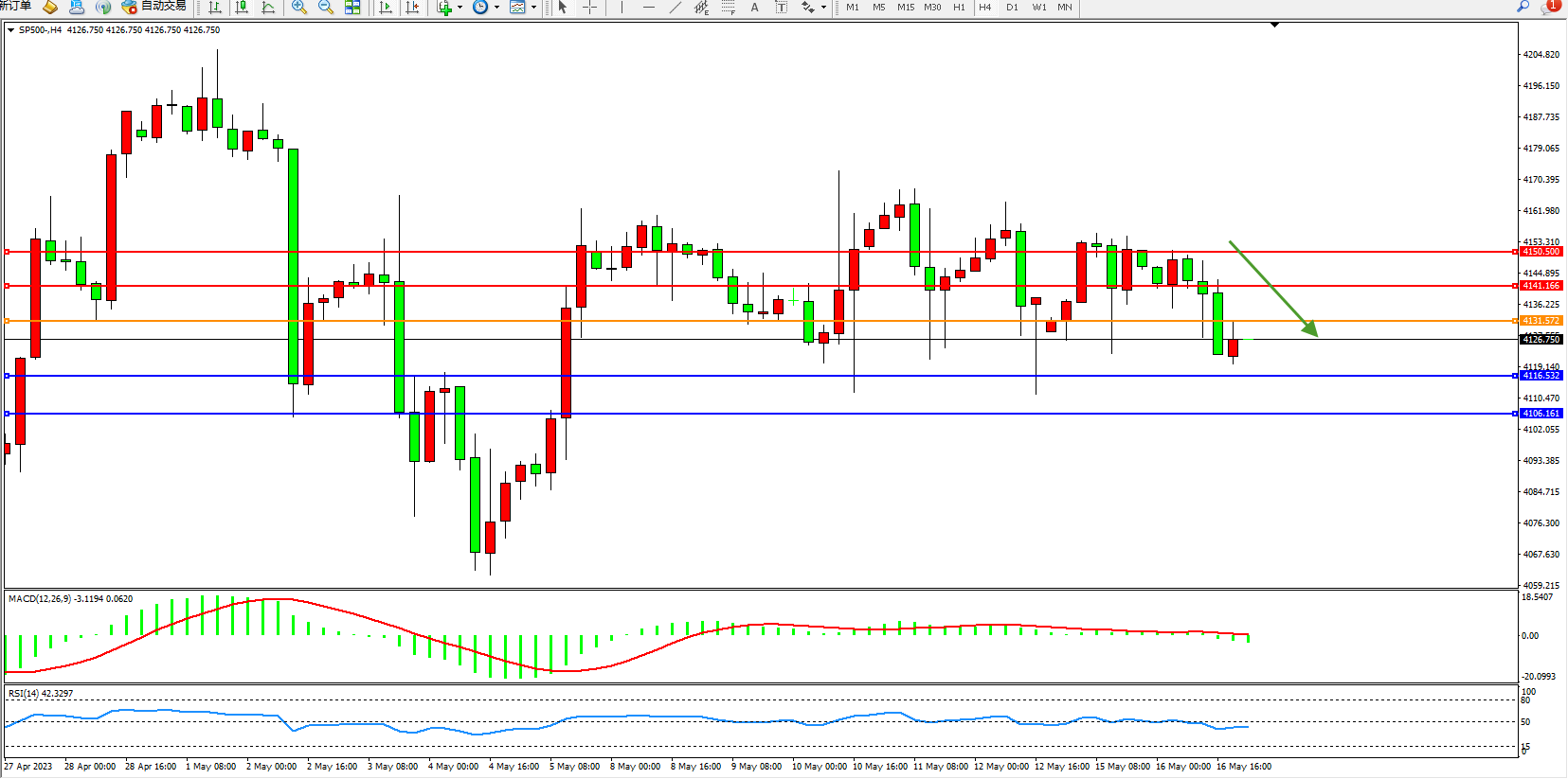 标普500指数5月16日(周二)收盘下跌25.98点,跌幅0.63%,报4110.30点;美联储梅斯特:我希望政策利率能够达到一个既有可能上调也有可能下调的水平。距离下次会议还有四周时间,需要看到更多数据。我认为我们还没有达到那个暂停加息的水平。