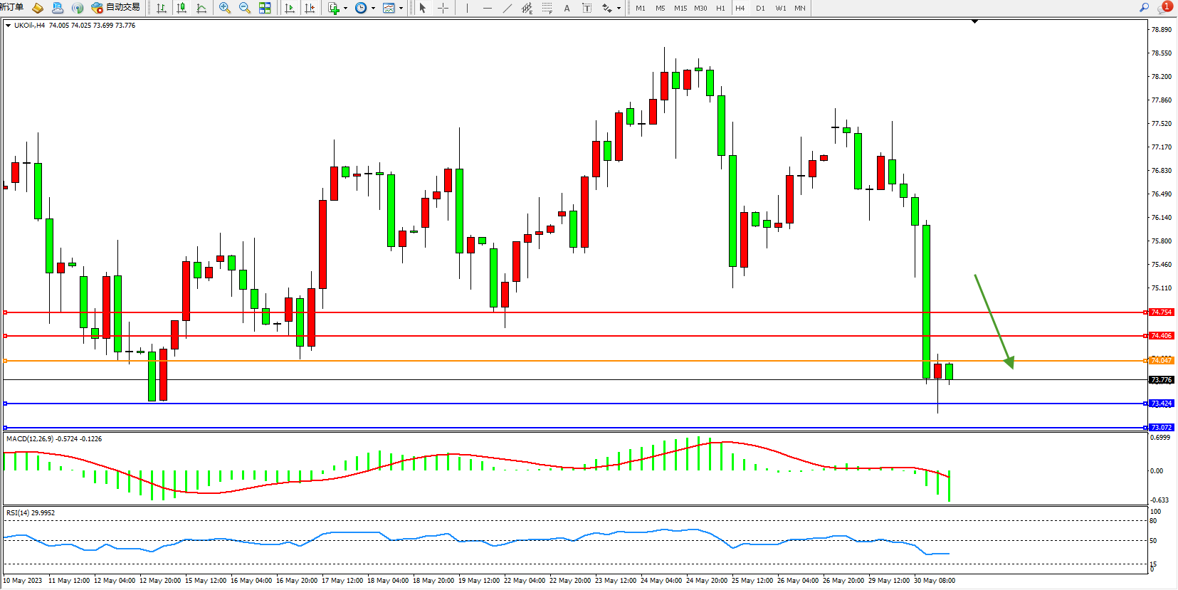 布油UKOil——4小时K线图显示: