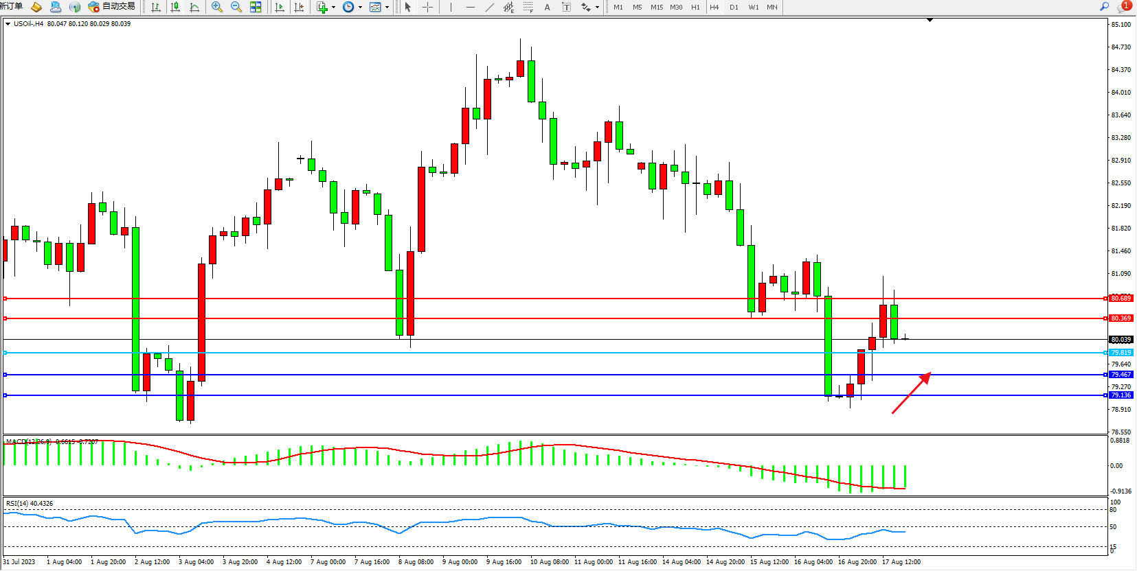 原油维持80.039附近震荡,由于市场对全球最大经济体存在看跌情绪,原油价格将陷入困境。但美联储可能进一步加息将削弱全球最大经济体的燃料需求,油价前景尚待观察。