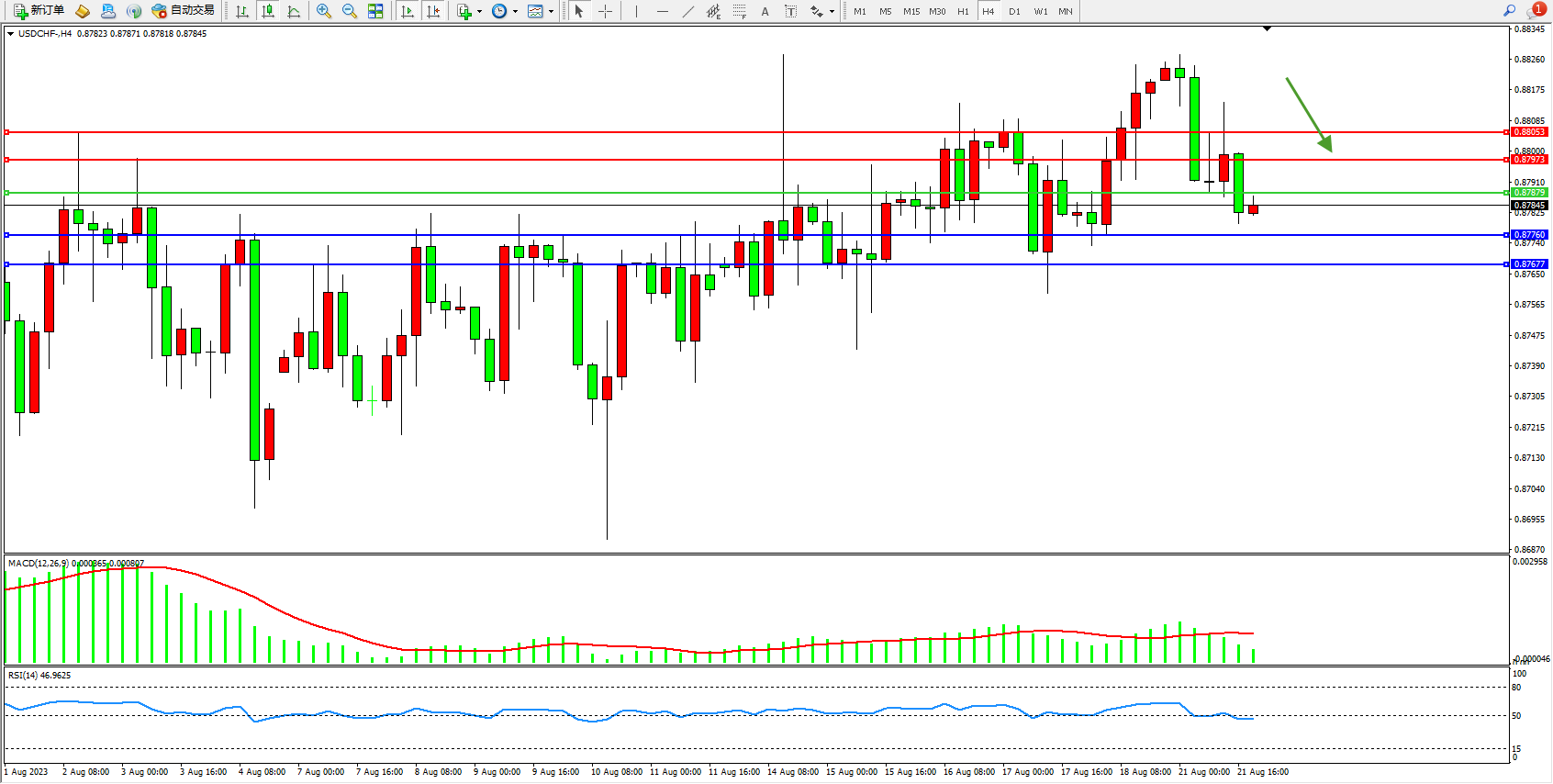 交易策略:0.87879下方看跌,目标0.87760 0.87677
