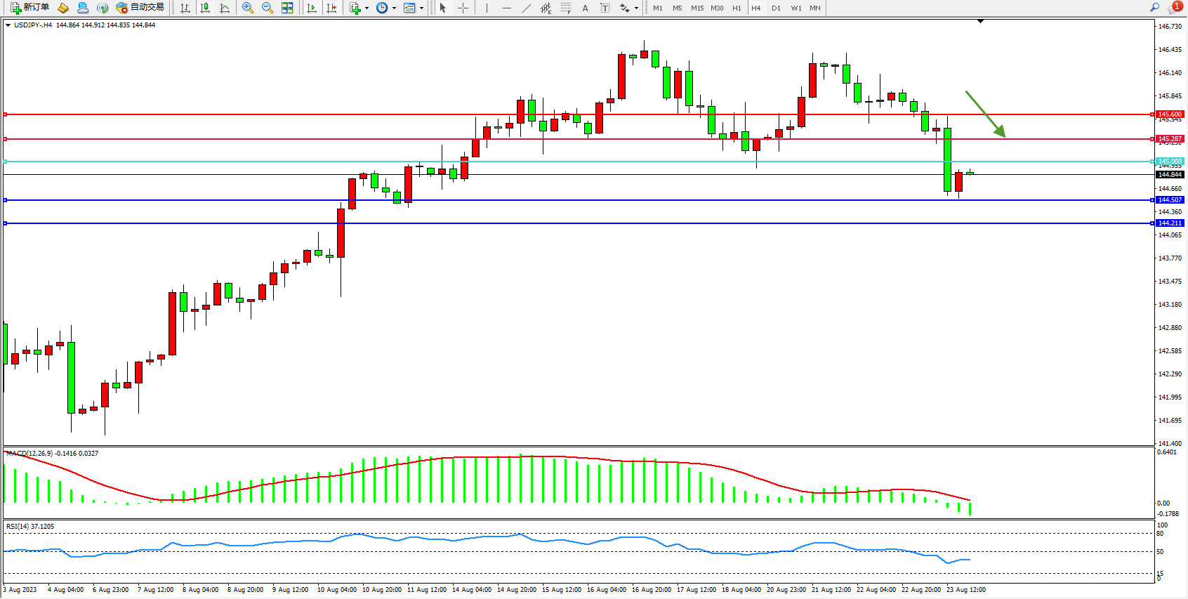 备选策略:145.000上方看涨,目标145.287 145.600