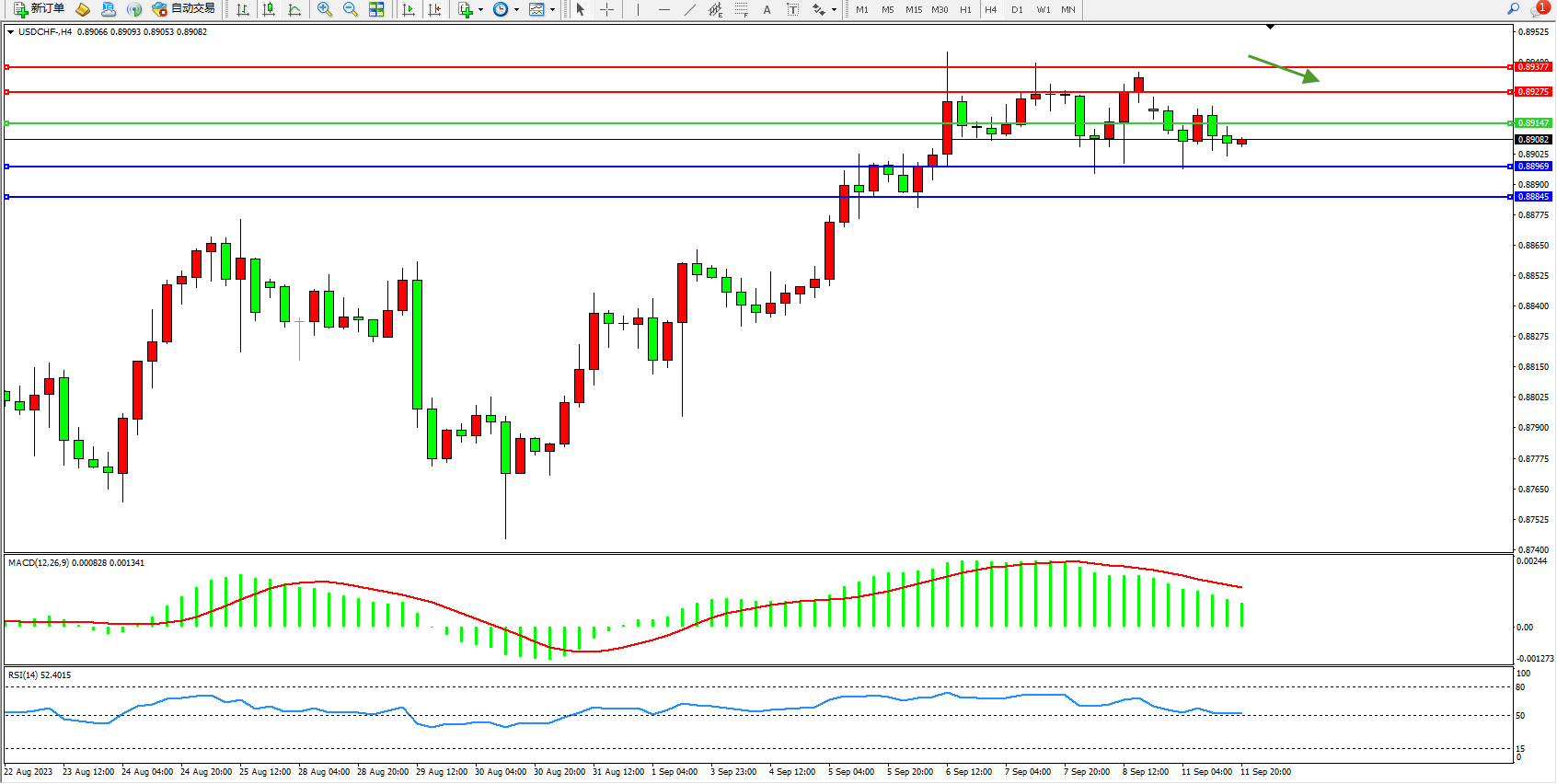 交易策略:0.89147下方看跌,目标0.88969  0.88845