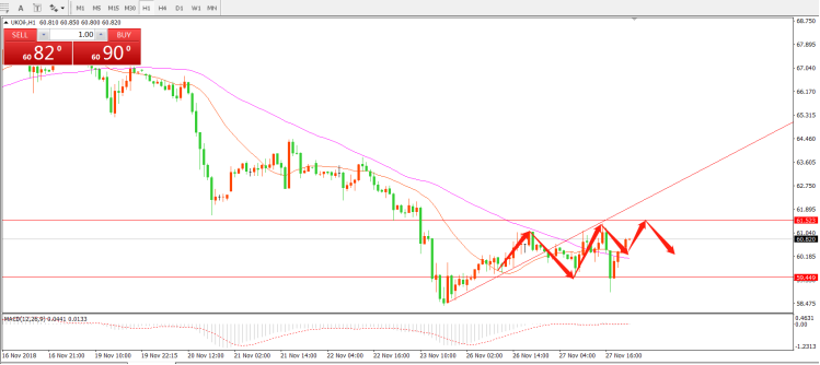 交易策略:等待价格反弹至61.50附近,轻仓做空
