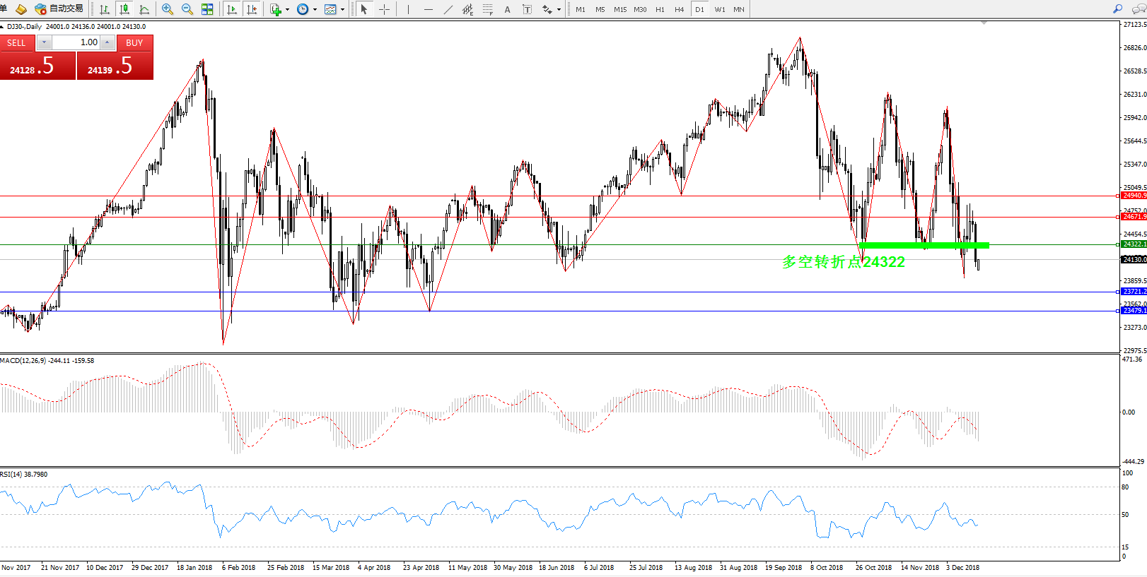 道琼斯指数DJ30—— 日K线图显示: