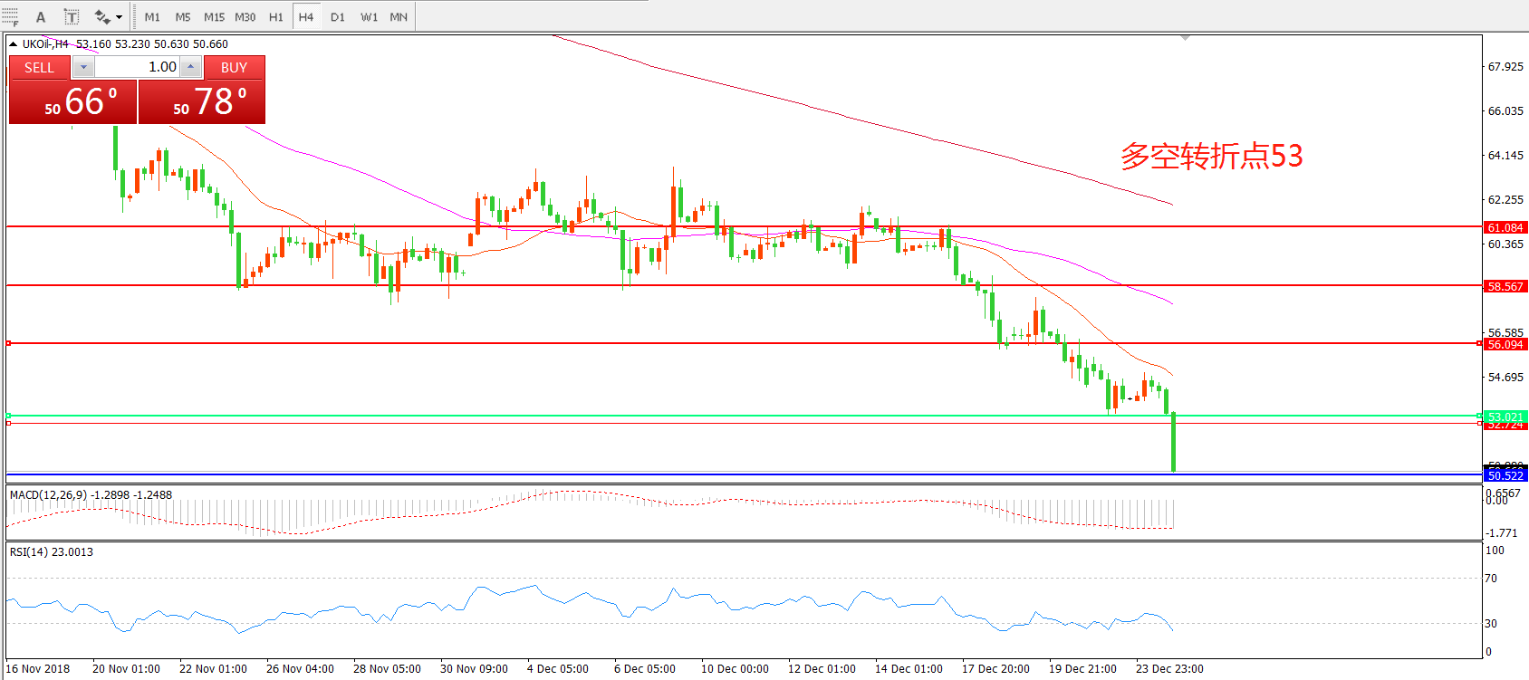 交易策略:在53.00之下看跌,目标50.00 46.00