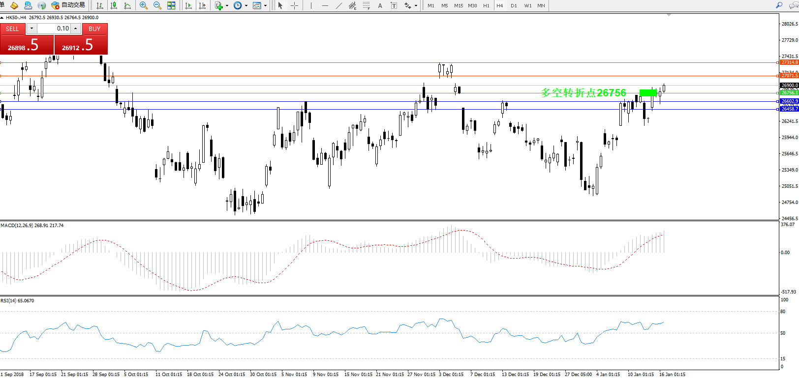 交易策略:26756上方看涨,目标27071、27314