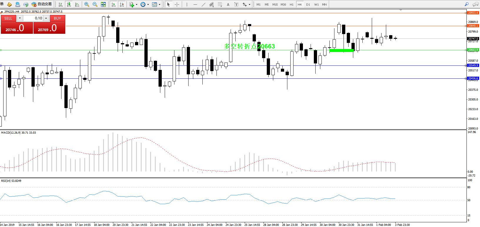 日经指数JPN225——4小时K线图: