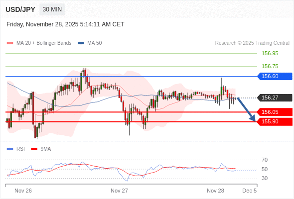 在 156.60 之下,看跌,目标价位为 156.05 ,然后为 155.90 。