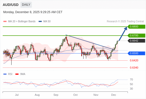 在 0.6500 之上,看涨,目标价位为 0.6700 ,然后为 0.6800 。