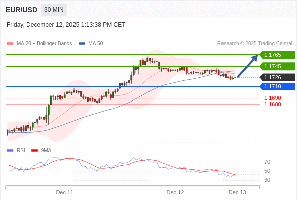 在 1.1710 之上,看涨,目标价位为 1.1745 ,然后为 1.1765 。