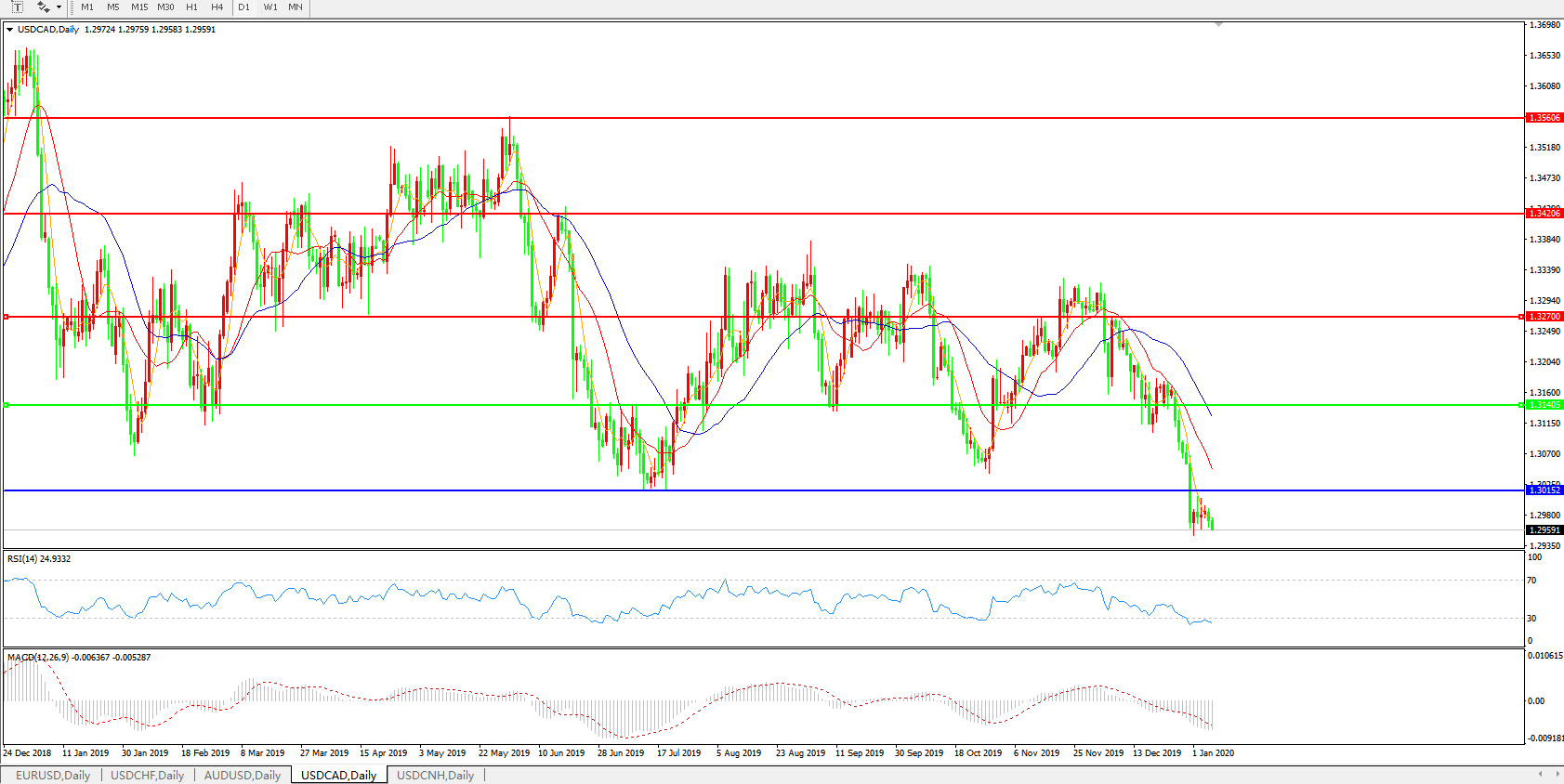 美元兑加元周一欧洲时段在反弹上攻1.30关口失败后再度走低,徘徊于近期低位水平。虽然,中东地缘局势动荡理应拖累商品系货币走软,然而,中东乱局令油市供应前景充满变局,却令NYMEX油价跳涨至2019年4月底以来的高位,这令与油价高度关联的加元也重新受到提振; 与此同时,美元指数在上周五美国ISM制造业数据继续低迷之后再陷颓势,投资者纷纷押注美联储在年内仍会维持宽松基调。并且业内机构对于美国经济前景也不甚乐观,这令美元在周一进入欧市后重新加速下跌,非美货币普遍得到提振; 这使得过去五周以来美元兑加元的跌势仍在延续,下方的支撑仍下看上周二(2019年12月31日)的低点1.2952。市场目光正转向本周五美加两国即将发布的12月就业数据,来判断行情将延续抑或反转。