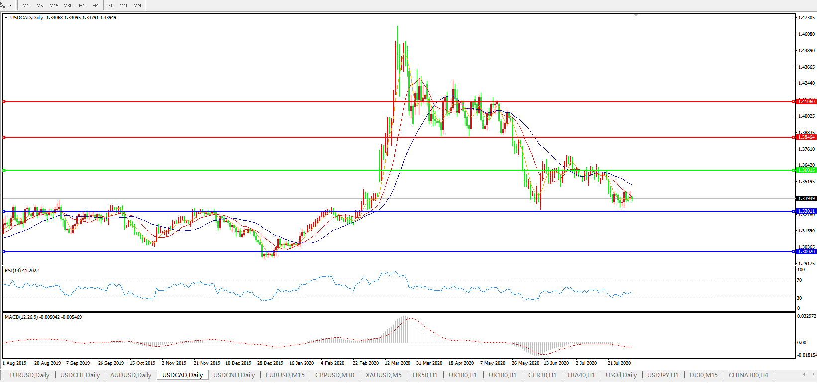 美元兑加元USDCAD 日线图: