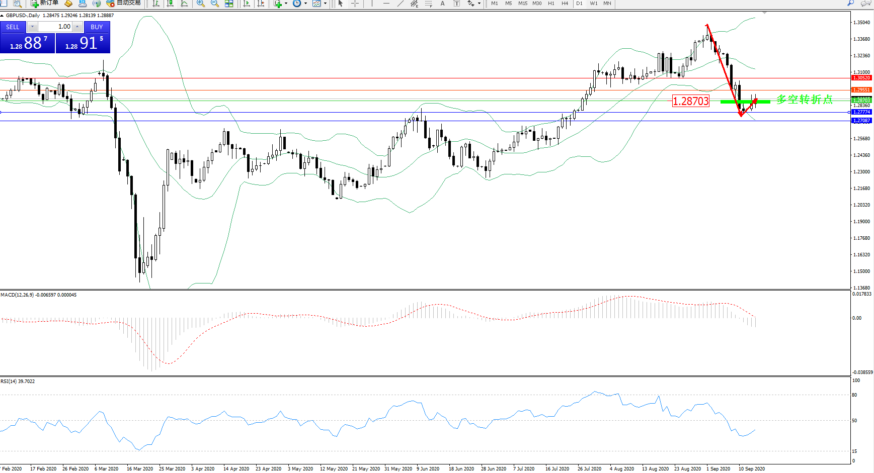 交易策略:1.28703上方看涨,目标1.29551、1.30520
