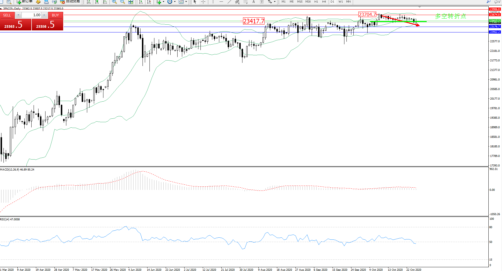 日经225指数10月27日(周二)收盘下跌13.34点,跌幅0.06%,报23481.00点。日本首相菅义伟在第203届临时国会上发表施政演说,强调在防止出现暴发性感染新冠病毒的基础上重启社会经济活动,促进经济早日复苏。 这是菅义伟9月当选日本首相以来的首次施政演说。他在谈到新冠肺炎疫情对策时说,政府计划明年上半年在优先确认新冠病毒疫苗的安全性和有效性之后,保证可供全民接种的疫苗数量,并优先为高龄者、基础病患者以及医务工作者免费接种。美股在大选前恐持续波动,随后在大选结果确定后出现反弹;从历史上看,美股通常会在选举日和年底前这段时间上涨;如果选举后计票时间很长,没有明确的获胜者,或者出现争议性结果,则将出现一段波动期。