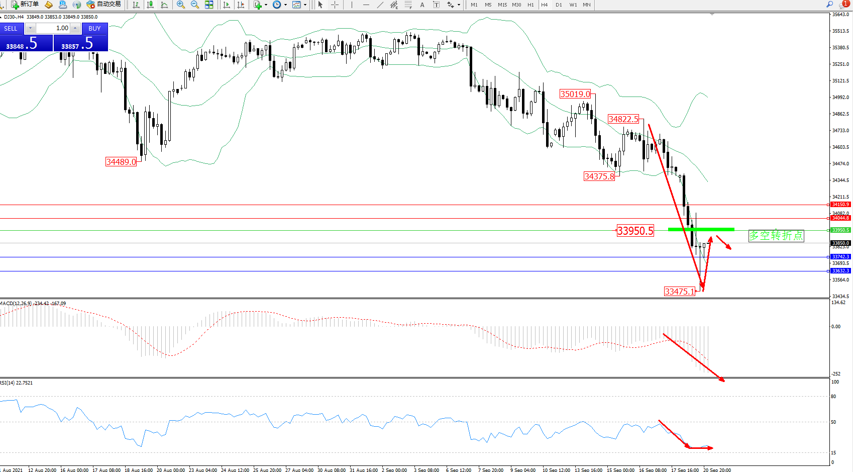 技术点评:空头动力延续布林带指标通道下轨附近持续震荡下探,低位抵达33475位置节点后急速回升,但空头下行趋势走势持续中,短期或维持震荡下行走势,布林带指标呈向下移动走势持续中,MACD指标处于空头区域低位震荡下行中,RSI指标处于空头区域震荡下行后开始缓慢走平;