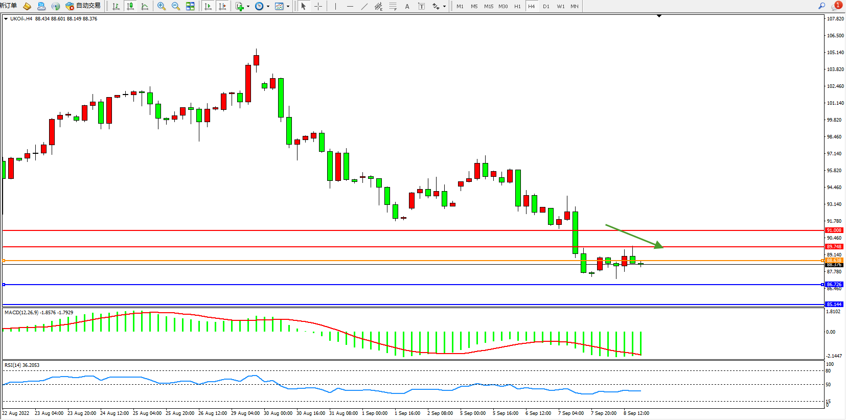 布油UKOil——4小时K线图显示: