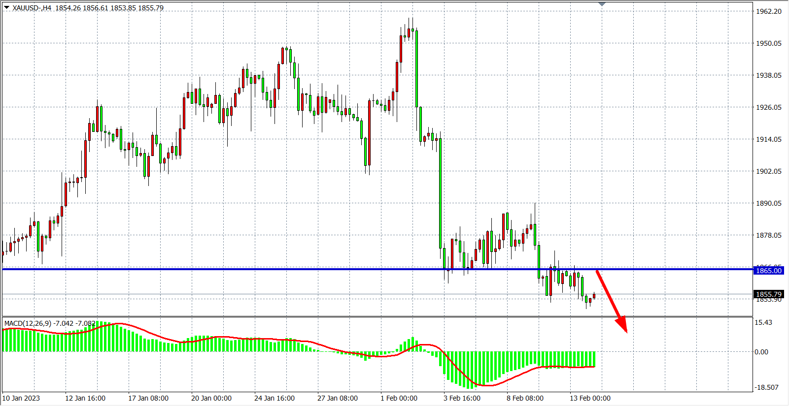 交易策略:在1865.00 之下看跌,目标1830.00         1820.00