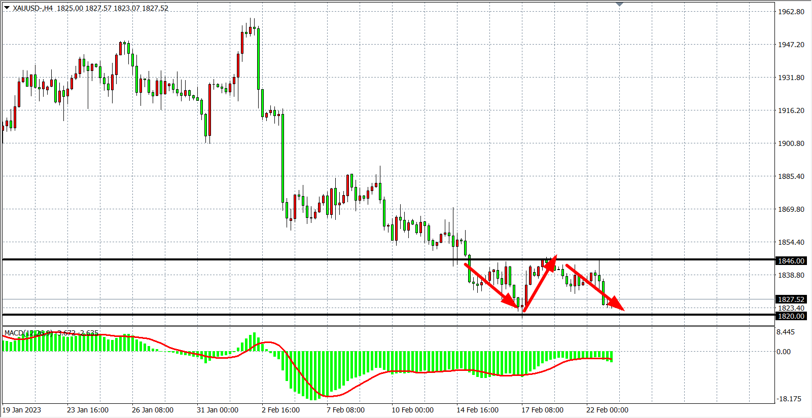 交易策略:在1820.00 之下看涨,目标1830.00 1847.00