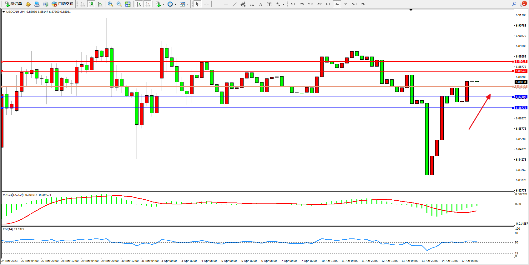 USDCNH:震荡上移 USDCNH  HKDCNH