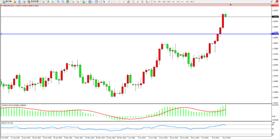 英镑兑美元高位拉升后回撤至1.31021附近震荡,货币市场预计英国央行的指标利率将在2024年3月达到6.3%的峰值。英国5月经济萎缩幅度低于预期,经济较预期强劲和市场积极地重新消化对英国央行收紧政策的预期已经在推动英镑反弹。