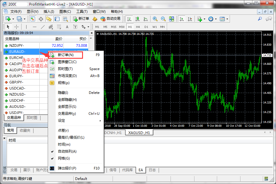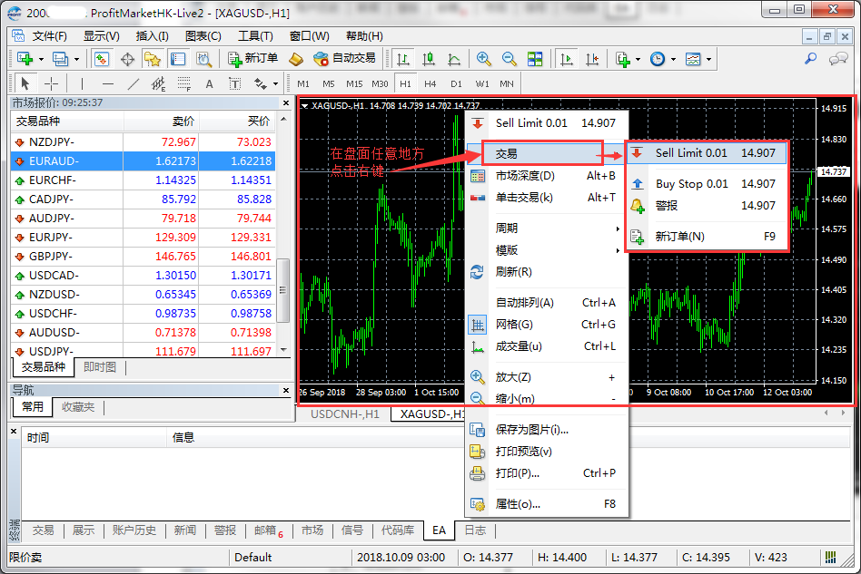 注:登录实盘帐号要选择服务器ProfitMarketHK-Live2登录
