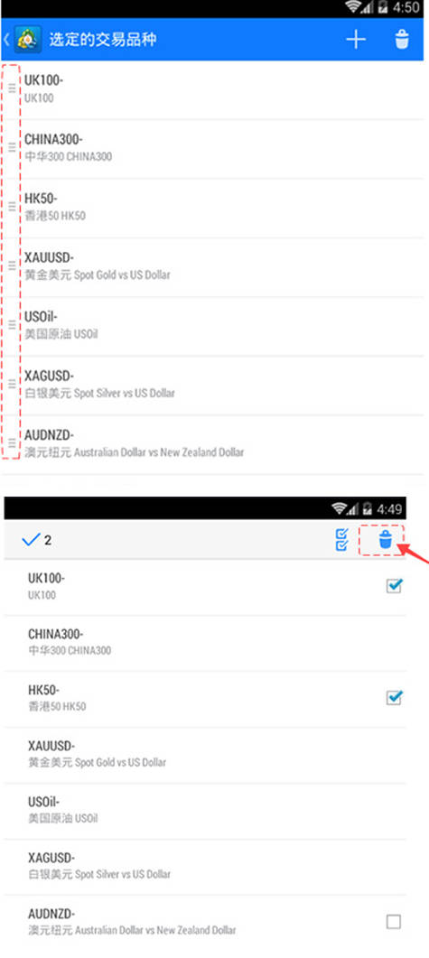 3.点击行情页面右上角的编辑按钮,进入到商品编辑页面。
